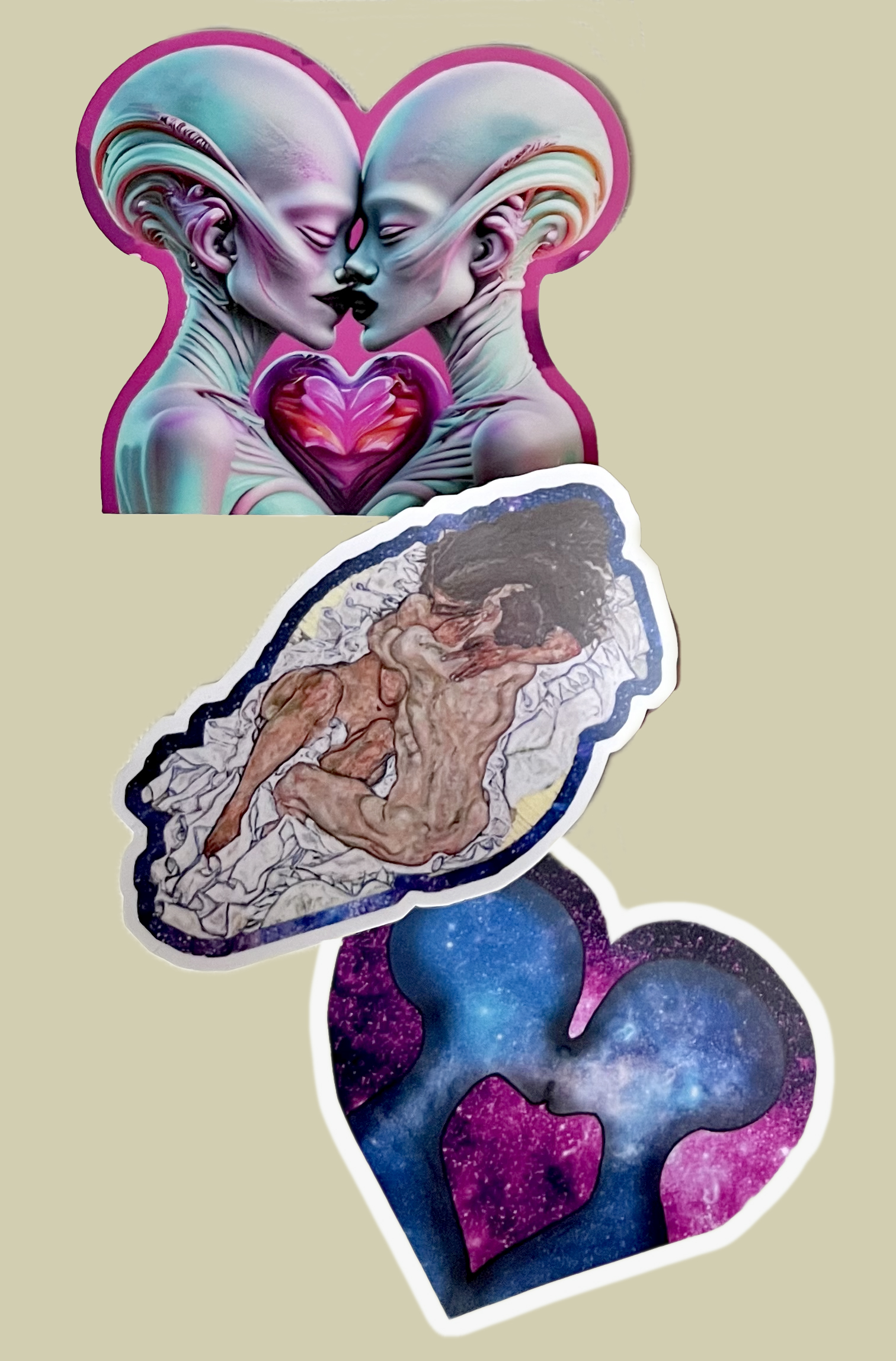 Three Alien(s) love stickers. Stickers are water resistant and measure 3 inches at the longest length. Free Shipping in the US.